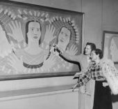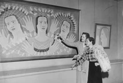 Entre otras se expondrán obras conocidas como la Estampa Cinemática, Escaparate (1928) o Mensaje del mar (1937), que pertenecieron a su amigo el arquitecto racionalista Antonio Bonet. Pero también las inéditas Estampa (1927) o Máscaras en Diagonal (1951), en paradero desconocido hasta ahora. Una de las grandes aportaciones de la exposición es un importante conjunto de bocetos al óleo relacionados con sus Cabezas o Retratos bidimensionales y sus Máscaras, prácticamente desconocidos hasta ahora.