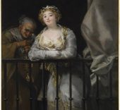 En el siglo XVIII, Goya adquiere protagonismo indiscutible con cuatro obras que muestran los variados intereses del genio aragonés: la escena de bandoleros Asalto a la diligencia, la mitológica Hércules y Ónfala, el delicado Retrato de la condesa de Haro –cuyo intimismo encuentra eco en las representaciones de Agustín Esteve y Louis-Léopold Boilly–, y Maja y celestina al balcón, ejemplo del casticismo goyesco. El gusto por lo popular se manifiesta también en otros pintores coetáneos y en otras derivaciones temáticas, como las escenas costumbristas de Lorenzo Tiepolo o la pintura galante de Manuel Camarón y de Luis Paret y Alcázar.