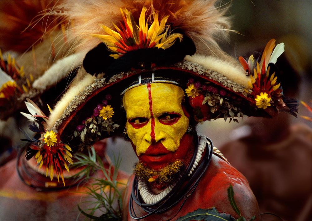 Entre los fértiles valles y las tierras altas rodeadas de brumas, distintas tribus sobreviven, cada una con su idiosincrasia, a un entorno hostil, pero majestuoso, relacionándose entre sí por una lengua franca: el “pidgin”. Sus hablantes se autodenominan “uantoks”, derivación del inglés “One Talk”, y despliegan un apabullante patrimonio cultural que se manifiesta en objetos tangibles como tocados de plumas y máscaras, representado en esta ocasión por la generosa cesión de materiales de la colección privada de Juan Carlos Rey, y otro inmaterial, pero de igual importancia, transmitido en sus ritos, fiestas y costumbres.