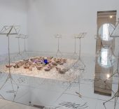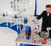 Todas las piezas que integran esta muestra trenzan un recorrido histórico y conceptual a través de una parte sustancial de su trabajo, aquella que aborda la idea de interferencia en el terreno conceptual, espacial y en los medios de comunicación. “Palabras quemadas, textos ilegibles autocensurados, conversaciones interrumpidas, voces entrecruzadas, imágenes descontextualizadas, residuos de la opulencia informacional, objetos desmembrados, desechos de la tecnología electrónica, ropa o zapatos usados, restos del exceso de la sociedad de consumo… La artista pone en marcha todos los mecanismos de interferencia de que dispone y los coloca generando fricciones en estos ‘paisajes’ mediante la paradoja, el choque visual y significativo”, explica la comisaria.