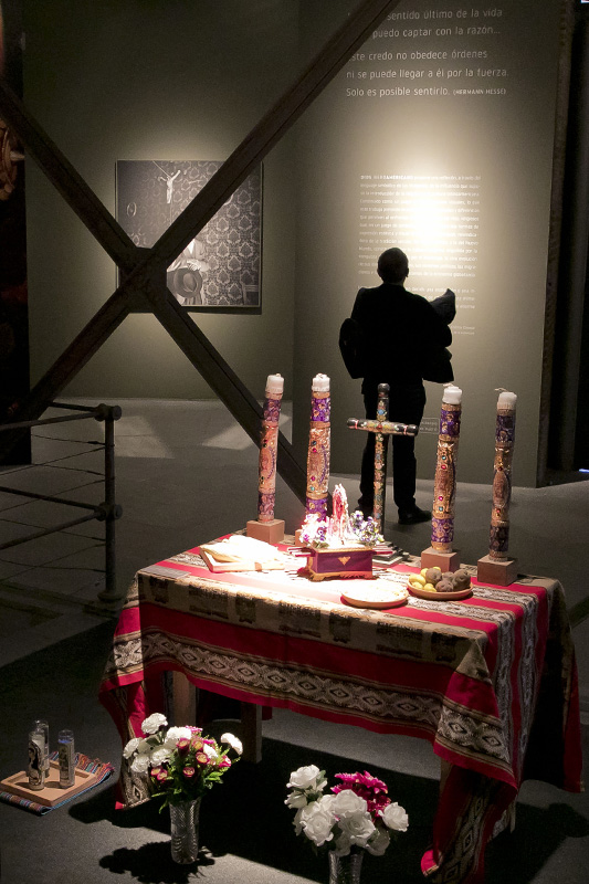 Díaz Burgos es un fotógrafo enamorado de la idiosincrasia latinoamericana y caribeña que ha centrado su trabajo a lo largo de su vida profesional en reconocer los símbolos españoles en el mestizaje cultural iberoamericano. Esta exposición es una buena muestra de su quehacer artístico. En ella evidencia la importancia de la religión en dos continentes diferentes, poniendo el foco sobre una civilización que engulló la cultura indígena pero que, a la vez, practicó un mestizaje social y cultural que daría lugar a una reinterpretación propia en forma de identidades nacionales y sus sistemas políticos.