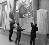 La siguiente sala aborda el trabajo de Laibach, grupo que se formó en 1980 en la ciudad industrial de Trbovlje y que operaba como equipo colectivo según el principio de producción industrial y totalitarismo, lo que significa que el individuo no habla, lo hace la organización. A continuación, el visitante se encuentra con el trabajo de IRWIN, un colectivo de cinco pintores (Dušan Mandič, Miran Mohar, Andrej Savski, Roman Uranjek y Borut Vogelnik) fundado en 1983, que, en contraste con la entonces predominante posmodernidad, recurrieron a la tradición del arte conceptual.
