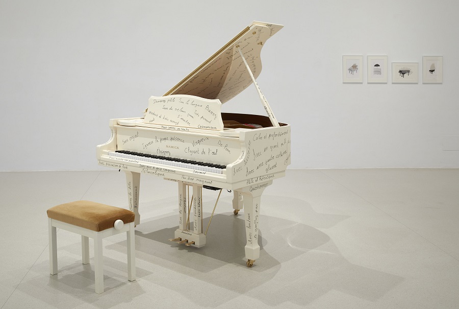Las partituras se exhiben junto a fotografías de acciones realizadas por la artista, desde los años ochenta hasta hoy, en diversos museos, centros de arte y festivales de performances de Europa, a modo de documentos, memorias a las que se otorga el estatus de “momento” y el valor potencial para otros posibles “presentes performativos”.