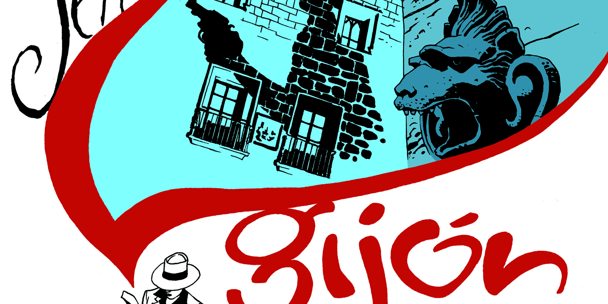 Torpedo, el personaje creado por Enrique Sánchez Abuli y al que hoy da vida el argentino Eduardo Risso, protagoniza el cartel realizado por éste último y en el que Luca Torelli aparece leyendo plácidamente un libro del que emerge una inquietante silueta que se proyecta sobre el Palacio de Revillagigedo.