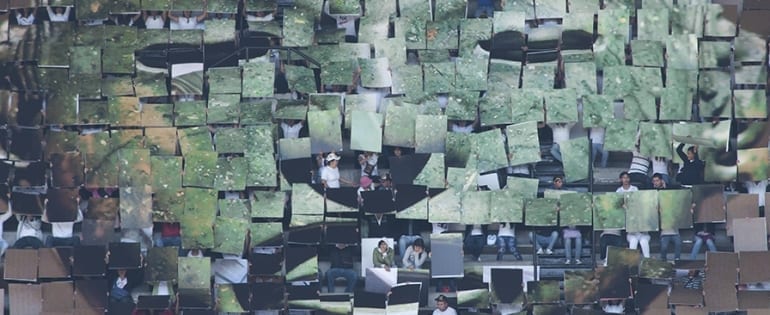 Urbano recurre a la retícula moderna para retratar la expansión urbana de Ciudad de México, con sus mercadillos callejeros y la estética kitsch. Los significados antagónicos se superponen: lo ancestral y lo moderno, lo popular y lo folclórico. En Color este elemento está sobresaturado y exagerado, es kitsch. La obra Bulto aparece como un objeto extraño e inexplicable en circulación perpetua.