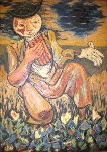 Ya en 1961, Antonio Leyva, director de Orfila, editó en su colección TRILCE los 23 grabados de la serie Papapájaros, exhibida una sola vez al año siguiente. 15 de ellos junto a la pintura homónima forman parte ahora de la exposición. En 1973, el Museo Español de Arte Contemporáneo dedicó una antología de la obra de Mateos y un año después Leyva contó con él en una de sus programaciones centradas en el expresionismo –con textos de Gloria Fuertes y Lauro Olmo, entre otros. 18 obras más, entre acuarelas con anotaciones manuscritas y óleos –ya reproducidos por Francisco Garfias en su monografía de 1977–, completan este homenaje.