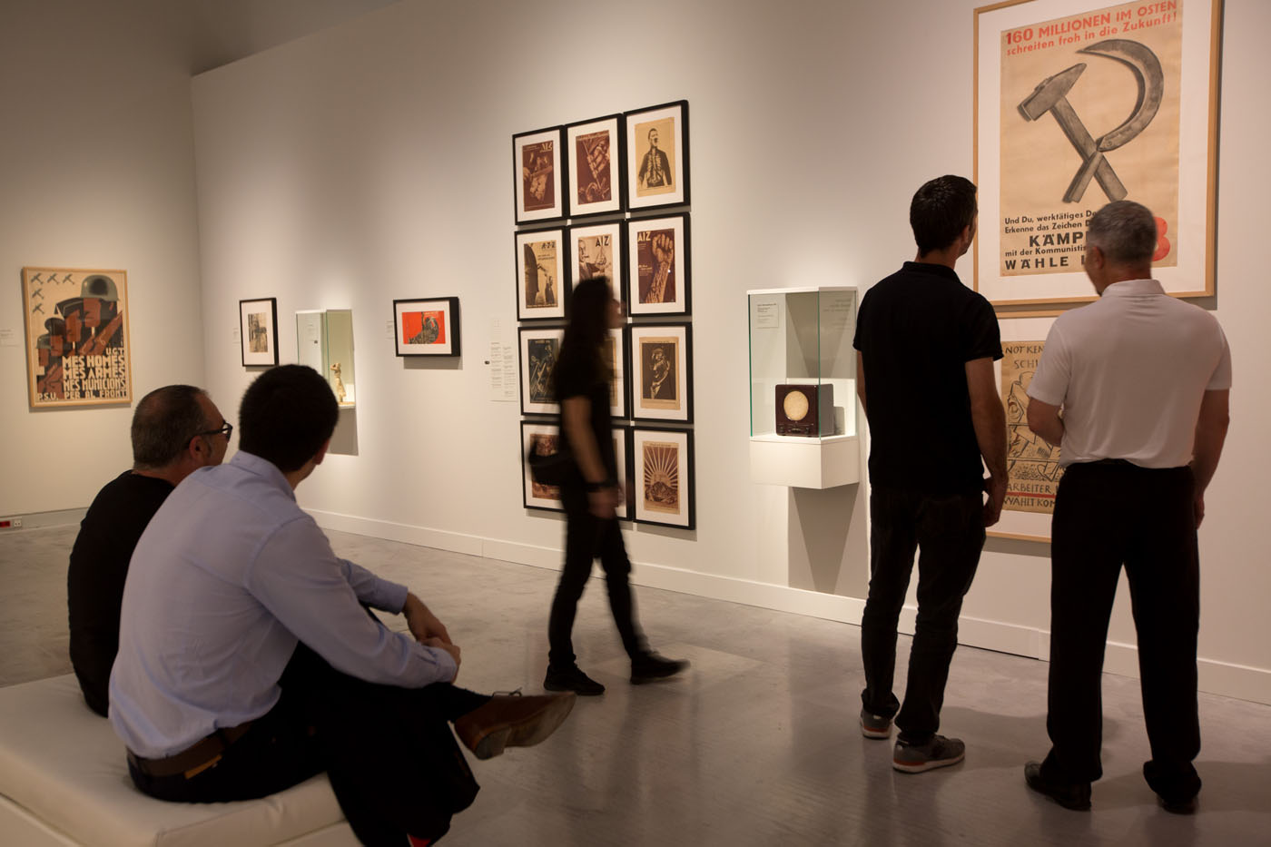 La muestra se articula en torno a tres ejes principales: creaciones poéticas y oníricas relacionadas con el dadaísmo y el surrealismo, que exploran el mundo de la fantasía, el sueño y el inconsciente; obras analíticas que experimentan con la forma y se adentran en el campo de la abstracción, y finalmente, el arte comprometido, de crítica social y propaganda política, que lanza un grito contra las injusticias y las guerras.