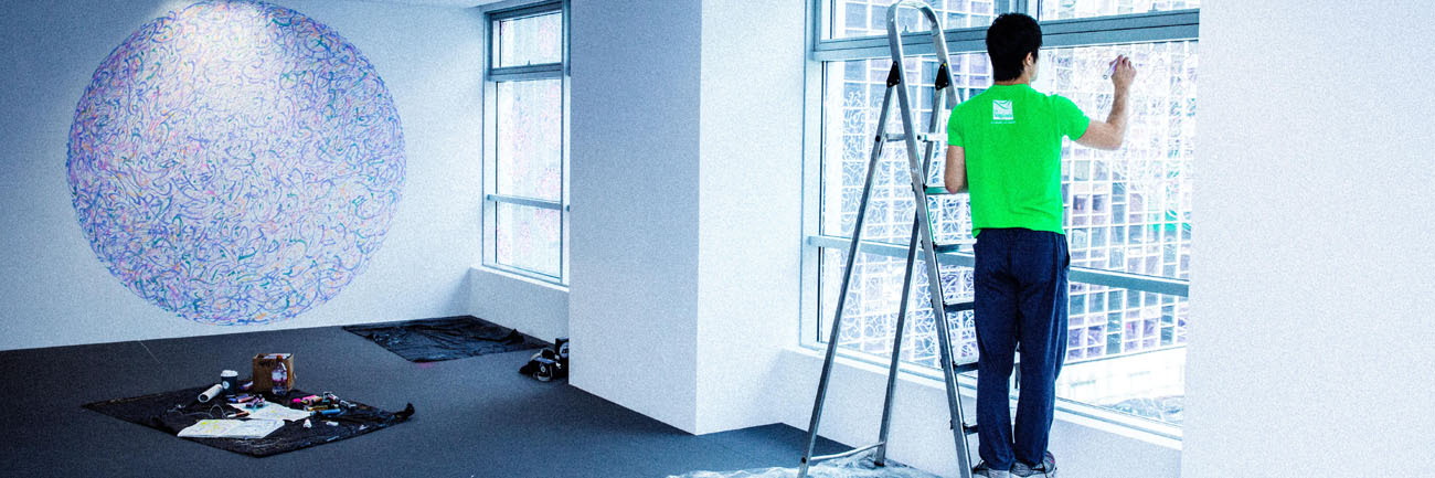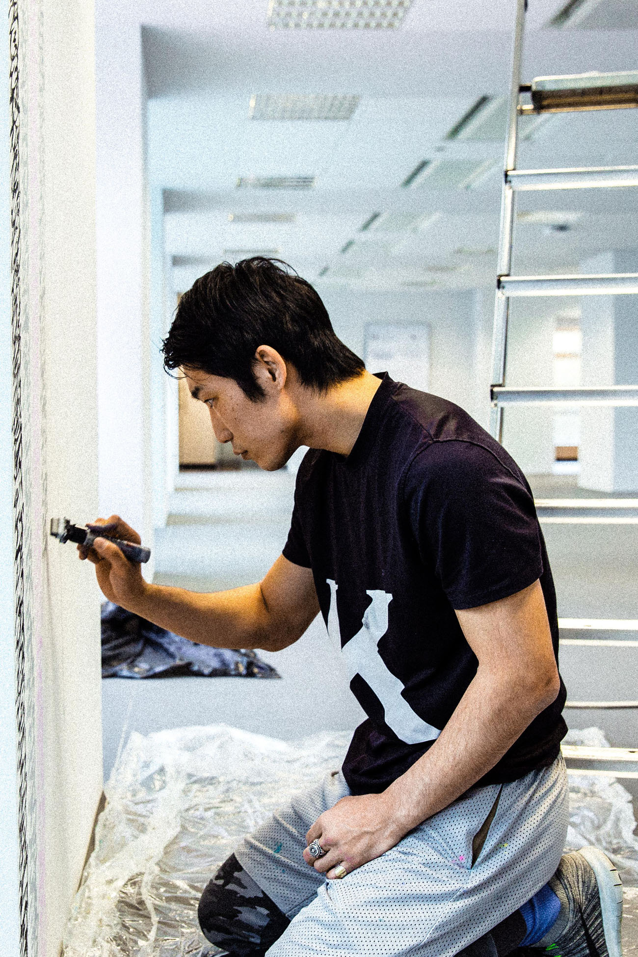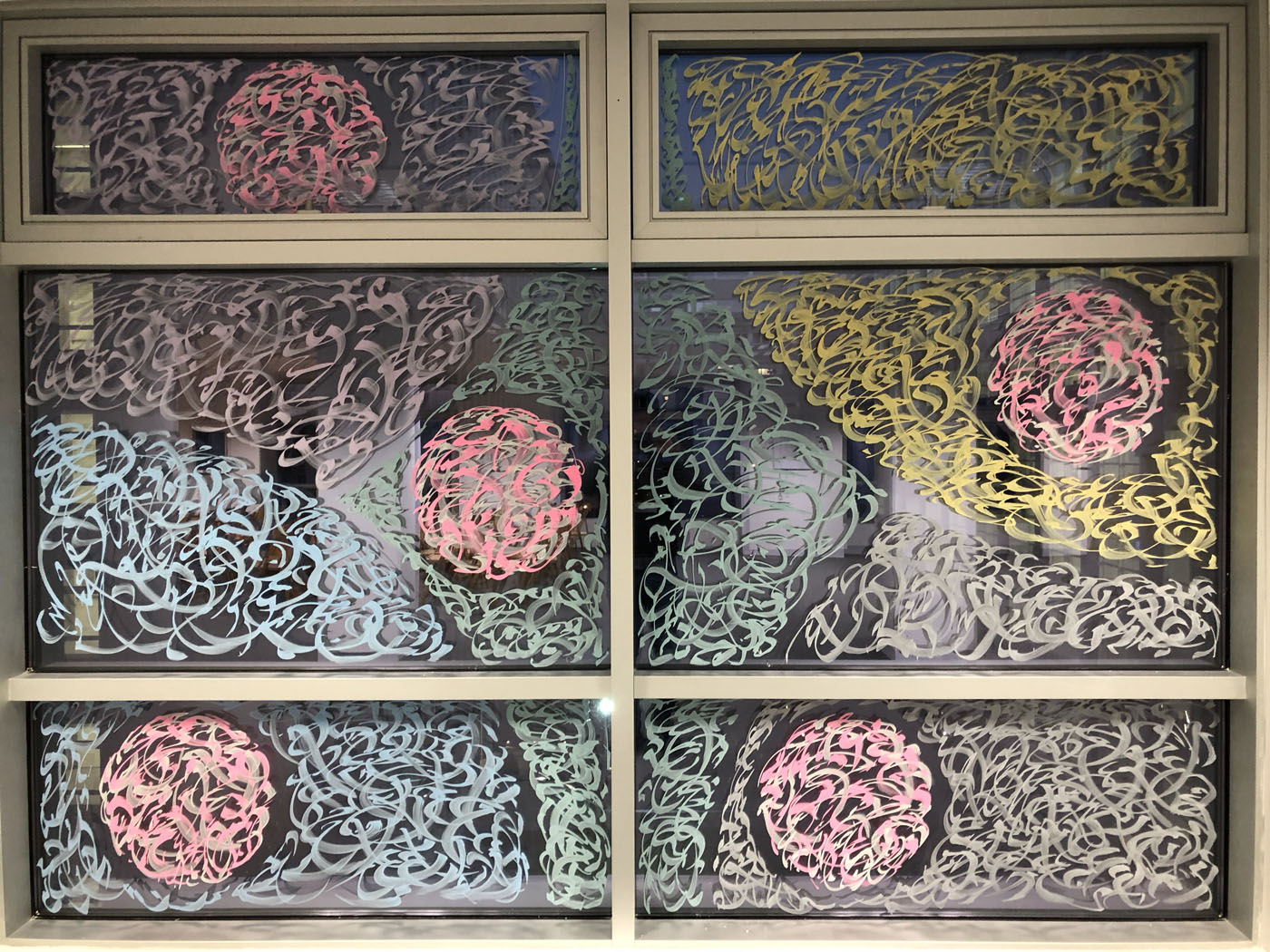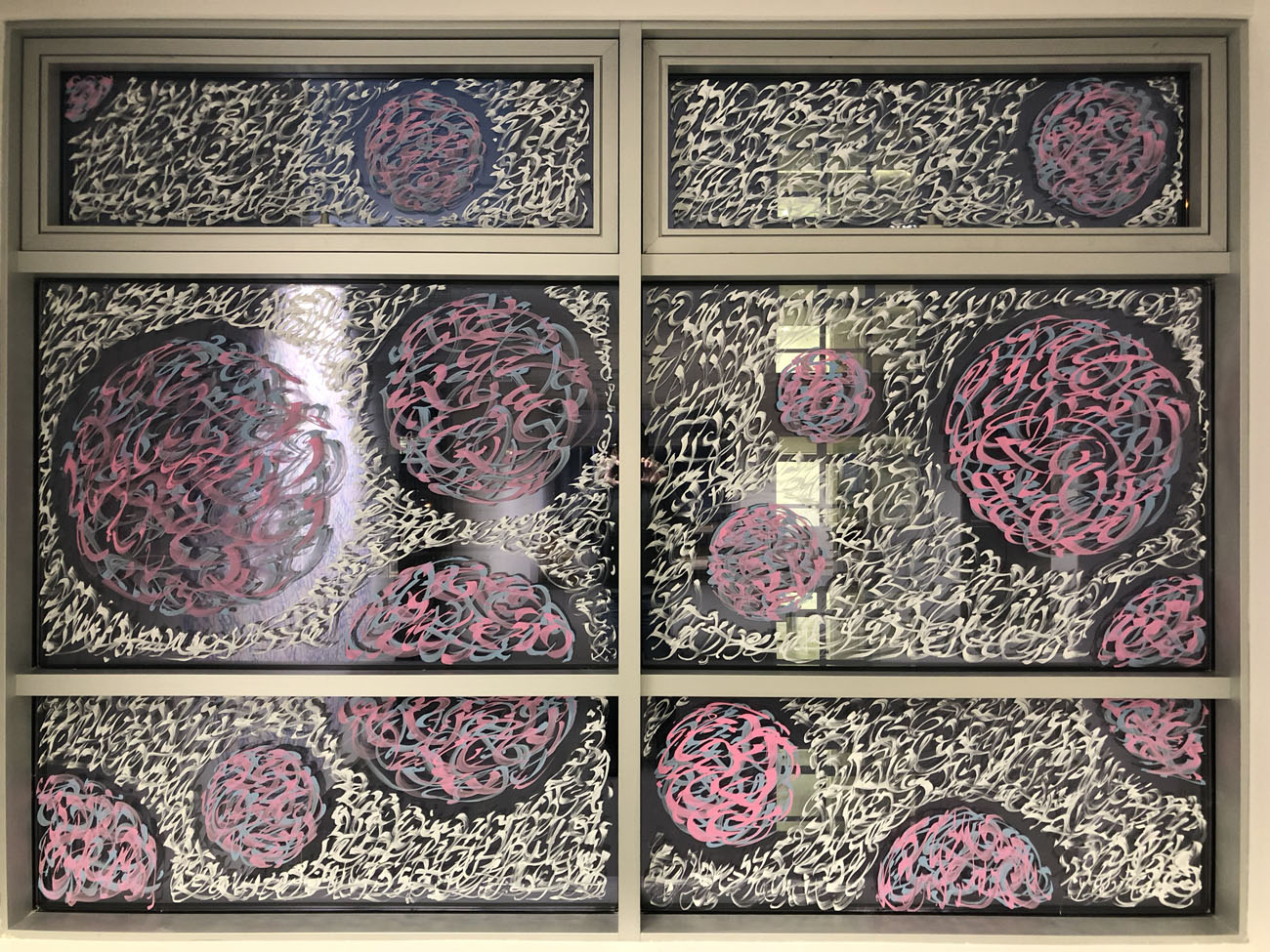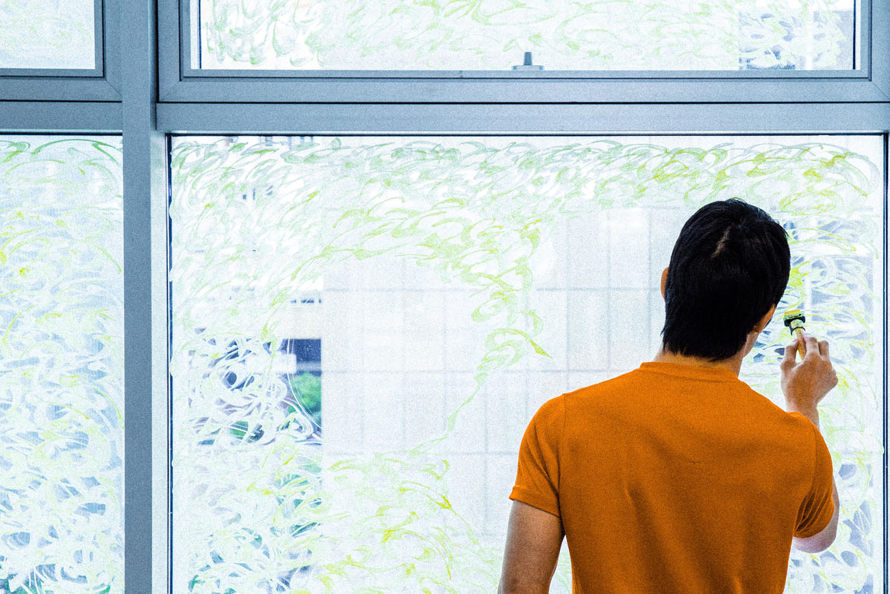 Durante la Humanity Week, celebrada en abril en el IE, el artista creó una obra de 60×60 cm basada en un concepto: felicidad. La universidad la mostró a 500 de sus alumnos y profesores de más de cien países que eligieron aquellas palabras que les inspiraba la obra. Después, Hasegawa las juntó y concibió un concepto más grande que se plasmó en 10 ventanas, nueve columnas y una pared de una planta completa del Instituto. Cada ventana tiene su número propio (1~10), y las columnas hacen de transición entre una y otra. En cuanto a la pared, representa todos los procesos, conceptos y palabras del proyecto.