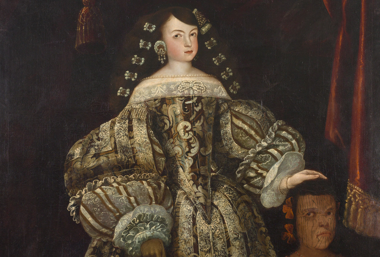 Retrato de Dª María Luisa de Toledo con su acompañante indígena. Atribuido a Antonio Rodríguez, hacia 1670. México. Depósito del Museo Nacional del Prado. Fotografía de Alberto Otero.