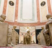 Las esculturas que aquí se exponen son principalmente antropomórficas, desde las formas humanoides de Francisco Leiro y Victoria Civera hasta la imponente geometría de María Luisa Fernández, que se alza en el Salón de los Pasos Perdidos.