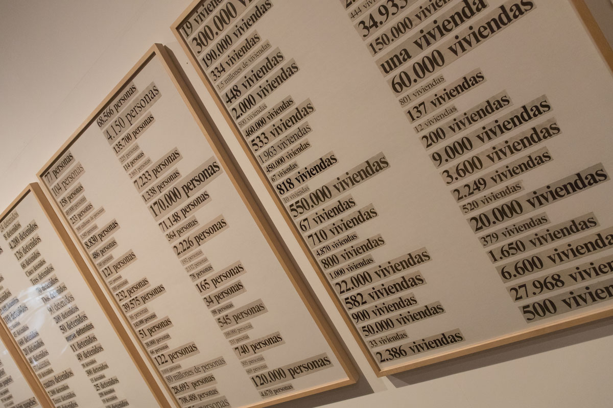 Mientras la escultura de Cristina Iglesias permite reflexionar sobre la idea de la ruina, la de Ángeles Marco presenta el uso de materiales industriales. La idea de mantener viva la memoria está simbolizada por la instalación de Esther Ferrer. En torno a este pasado de recorte de libertades y censura giran las obras de Concha Jerez y de Daniel G. Andújar. Por su parte, las fotografías de Colita captan las tensiones de la historia española a partir de la muerte de Franco. La historia y situación actual de España son los temas de reflexión de las obras de Ignasi Aballí, Pedro G. Romero, María Ruido y Patricia Esquivias.