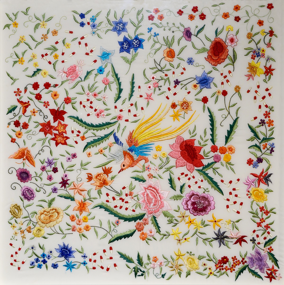 Albarracín trabaja con registros radicalmente opuestos desde el esteticismo formal de sus dibujos, bordados, mandalas y fotografías, a la belleza salvaje de sus vídeos, performances e instalaciones, todos ellos presentes en esta muestra comisariada por Pia Ogea y organizada por la Subdirección General de Promoción de las Bellas Artes del Ministerio de Cultura y Deporte.