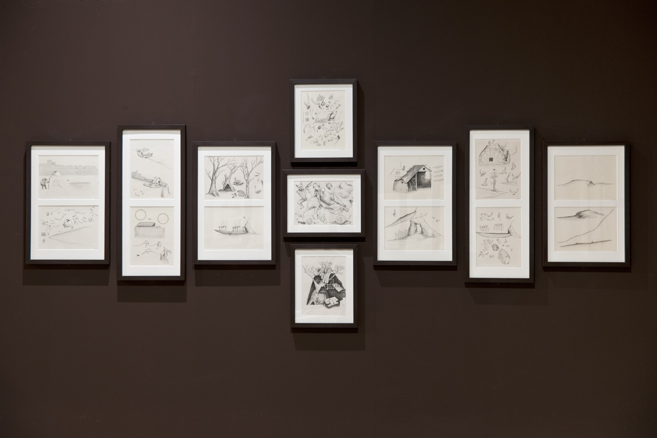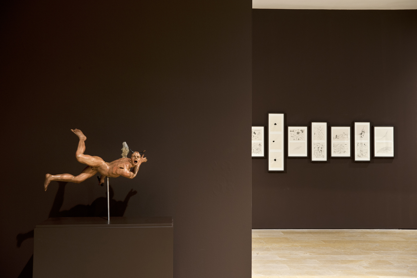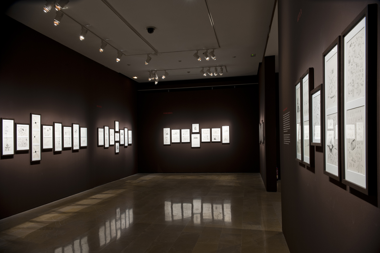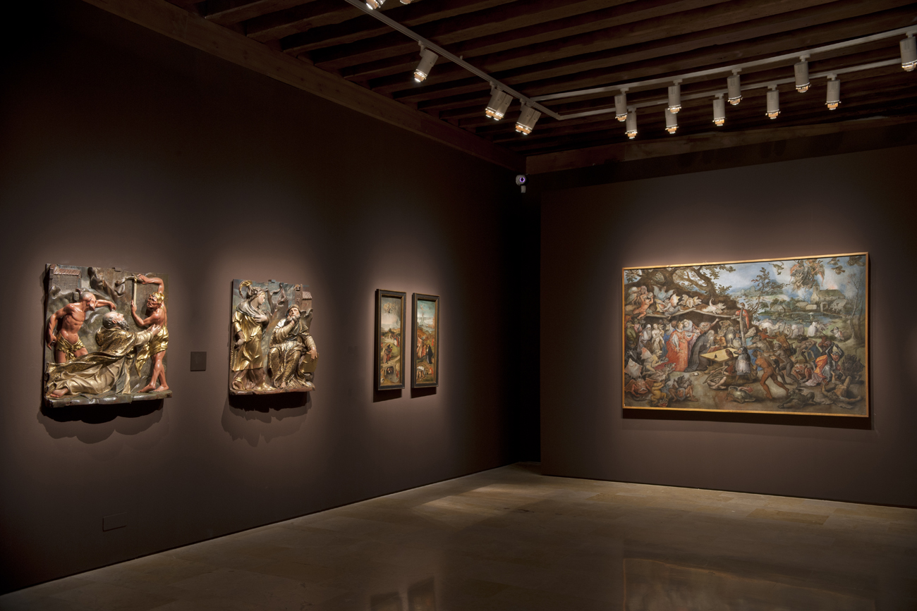 La muestra incluye un total de 108 piezas (99 dibujos, cinco pinturas, dos relieves, una pieza de mobiliario y una videoinstalación) de Jan Brueghel de Velours, del Taller del Bosco; Diego Rodríguez; Leonardo Carrión; Martin Schongauer; Pieter Brughel el Viejo y Antoine Roegiers procedentes del Museo del Prado, el Museo Lázaro Galdiano, la Biblioteca Nacional de España, la Colección Pas-Chaudoir, el Museo Nacional de Escultura y del propio Roegiers.