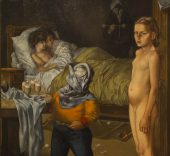 Con este trasfondo, Tanning saca a relucir el simbolismo de la puerta y su poder para dividir el espacio privado y público: en sus pinturas y esculturas, los cuerpos se arquean o batallan contra la puerta, se escapan de las paredes o se deleitan en deseos prohibidos, alcanzan la puerta medio abierta o se zambullen más allá de su marco sombrío.