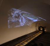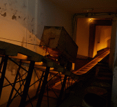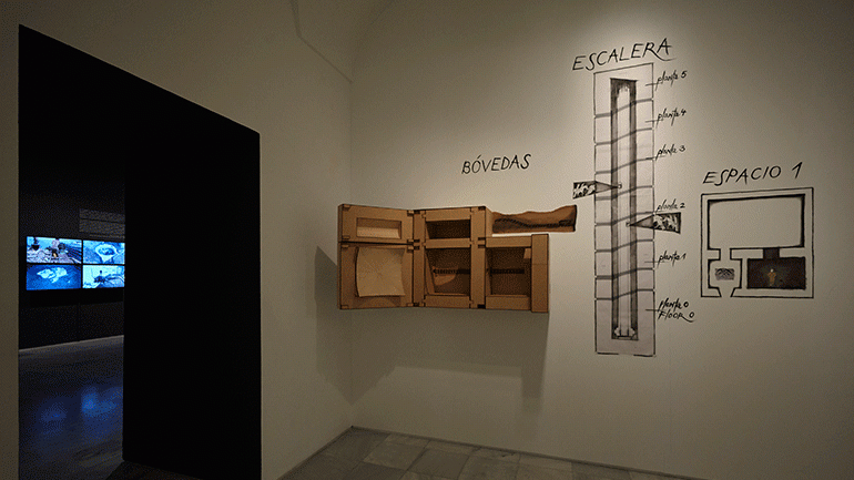 Un circuito cerrado de televisión muestra imágenes de los otros dos espacios, manteniendo una línea continua con toda la exposición. Así, en las escaleras se presenta una instalación audiovisual con imágenes del transporte de las mulas utilizadas por los mineros para poder acceder a las minas. Estas imágenes recorren las cinco plantas de altura del edificio, permitiendo al visitante vivir la experiencia física de ese ascenso.