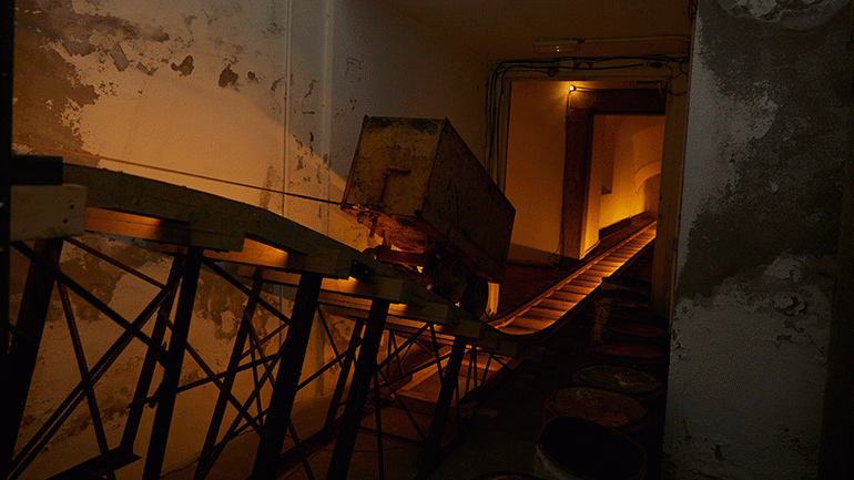 En la Sala de Bóvedas, el espectador podrá relacionar el espacio arquitectónico de Sabatini con el interior de una mina tradicional. Allí, una instalación formada por material original traído de la mina de Marmato interactúa con una proyección de vídeo grabado en las mismas minas. Rieles con sus vagonetas mantienen un viaje continuo que articula esta sala con las escaleras.