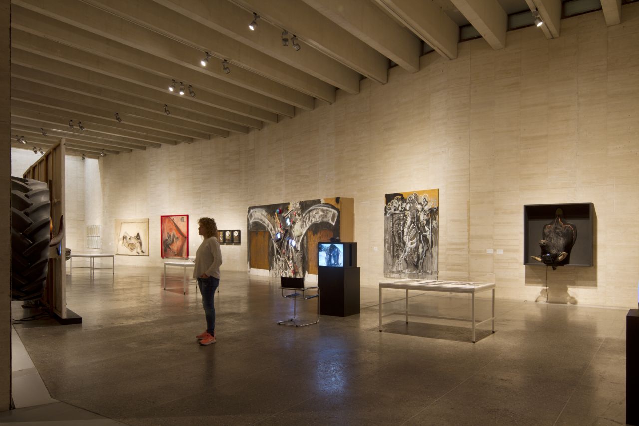 También están presentes algunas obras de sus series o ciclos más conocidos como El muerto que tiene sed (1978), el ciclo España (1985-86) o El entierro de la sardina (1985-86), junto a cuadros escasamente exhibidos por sus grandes dimensiones como La caída del muro de Berlín (1990) o 9 de noviembre (1989). En uno de los patios del museo puede verse la obra 130 Km/h (1963), que presenta el vehículo original que fue arrollado por una locomotora en el marco de una de la acciones del happening Nein-9-dé-coll/agen (1963).