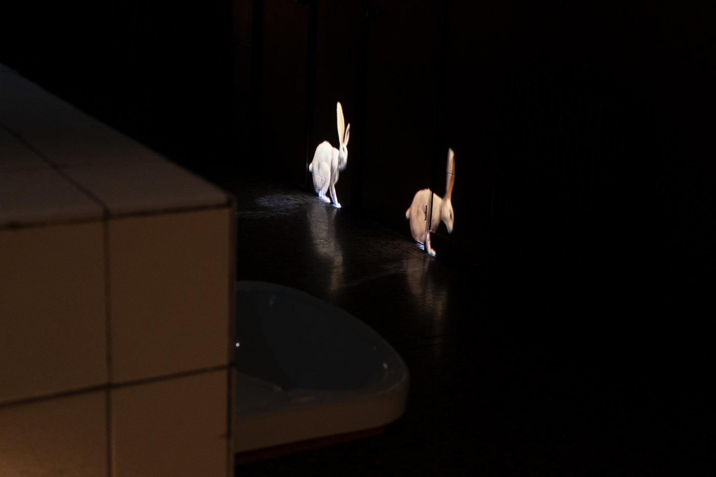 La exposición en Tabacalera está dividida en dos espacios cuya separación física es también conceptual. La primera parte del proyecto, ubicada en la Sala Estudios, presenta la serie Rabbit in Wonderland (2010-2012), expuesta por primera vez en España. Inspirada en Alicia en el País de las Maravillas, Lashai se apropia de uno de los protagonistas del relato, el conejo blanco, para explicar en cinco capítulos la historia política de la segunda mitad del s XX en Irán.