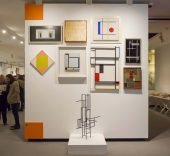 Obras del cubismo (Gris, Braque, Picasso, el segundo cubismo), el neoplasticismo (Mondrian, Van der Leck, Van Doesburg, Rietveld y Van’t Hoff), la Bauhaus (Gropius, Itten, Klee, Kandinsky, Gunta Stölzl, Feininger, Josef y Anni Albers), la obra de arquitectos y diseñadores como Ray y Charles Eames, Bruno Munari, Hermann Finsterlin, Bruno Taut, Le Corbusier, Frank Lloyd Wright, Enzo Mari o Marcel Breuer, además de obras suprematistas, constructivistas, futuristas, dadaístas o surrealistas y una amplia selección de artistas, diseñadores y arquitectos de la segunda mitad del siglo XX.