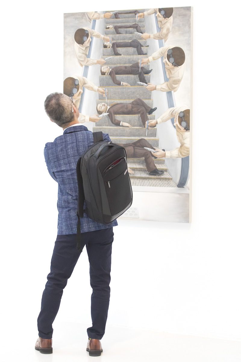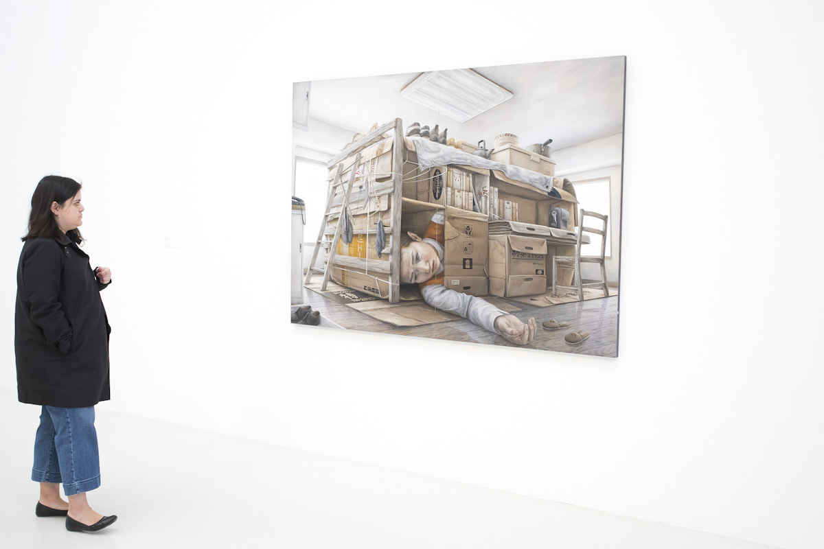 Por otro lado, el título de la exposición está tomado de una frase del propio artista y alude a la proyección de sí mismo en otros. De hecho, Ishida se identificaba con esos melancólicos personajes inmersos en escenas de alienación: “Intenté reflejarme a mí mismo –mi fragilidad, mi tristeza, mi ansiedad– (…) Me expandí para incluir a los consumidores, los especuladores, los trabajadores y los japoneses. Las figuras del cuadro se expandieron hacia gente que puedo sentir”.