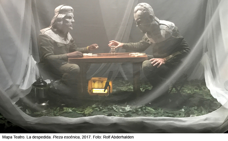 Con sede en Bogotá desde 1986, Mapa Teatro es un laboratorio de creadores fundado en París en 1984 por Heidi Elizabeth y Rolf Abderhalden, artistas visuales y escénicos colombianos. Desde su creación se ha convertido en uno de los colectivos más interesantes de la escena artística latinoamericana creando diferentes propuestas en el ámbito de las “artes vivas”. En la actualidad se puede ver en el Reina Sofía su exposición De los dementes, ò faltos de juicio, producida por el programa Fisuras.