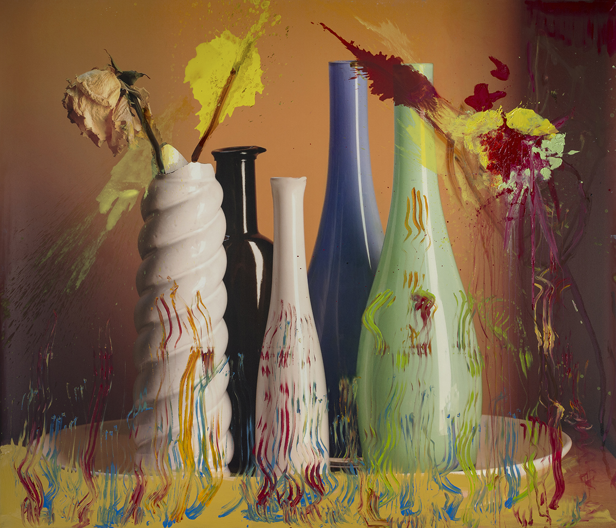 Ahora, tras haber iniciado hace un par de años una aventura en la pared de la Fresh Gallery de Madrid mostrando sus fotografías de bodegones, Pedro Almodóvar se acerca a Jorge Galindo y entre ambos plantean una aventura que es una acción y, por tanto, una reflexión, sobre el espacio del cuadro, para lo que parten de lo propiamente decorativo sin ningún tipo de complejos. Como Melissa Hinndell, a ellos lo que les gusta es pintar flores y, como ella, lo gritan con orgullo.