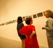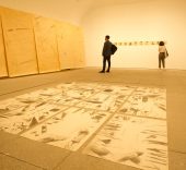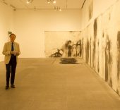 Dibujos a gran escala, colores brillantes o perspectivas inusuales perturban la percepción del espectador respecto a lo que se le da a ver. El movimiento del cuerpo continúa en el espacio expositivo, donde el montaje de las obras, tarea que al artista no delega en otros, cobra enorme importancia. Cahn sitúa en el mismo nivel escalas dispares, colores luminosos con negros profundos, perspectivas que permiten ver a distancia junto a dibujos realizados «piel a piel» sobre el papel o el lienzo, buscando agitar nuestra percepción. Coloca las obras a la altura del ojo y estas nos miran abiertamente. Si el arte es político, piensa Cahn, no es solo por lo que puede exponer, sino por su poder de hacer que nos expongamos a él.