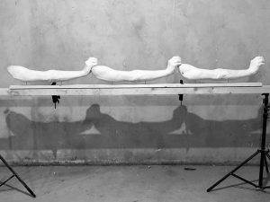 Y- Una columna de piernas obtenida de moldes de las mismas personas y realizadas en espuma de poliuretano.