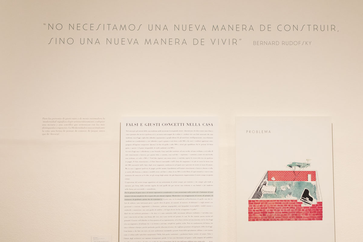 La muestra presenta obra de más de quince arquitectos italianos y españoles con fotografías vintage de grandes autores como Giorgio Casali, Francesc Català-Roca u Oriol Maspons, entre otros, además de croquis, dibujos, publicaciones y vídeos realizados en alguna de las viviendas más relevantes como la Casa Ugalde y la Casa Rovira de Coderch.