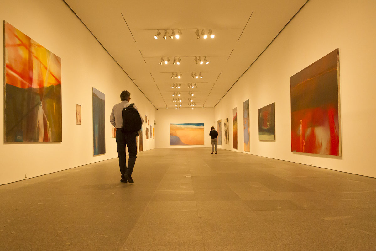 Dibujos a gran escala, colores brillantes o perspectivas inusuales perturban la percepción del espectador respecto a lo que se le da a ver. El movimiento del cuerpo continúa en el espacio expositivo, donde el montaje de las obras, tarea que al artista no delega en otros, cobra enorme importancia. Cahn sitúa en el mismo nivel escalas dispares, colores luminosos con negros profundos, perspectivas que permiten ver a distancia junto a dibujos realizados «piel a piel» sobre el papel o el lienzo, buscando agitar nuestra percepción. Coloca las obras a la altura del ojo y estas nos miran abiertamente. Si el arte es político, piensa Cahn, no es solo por lo que puede exponer, sino por su poder de hacer que nos expongamos a él.