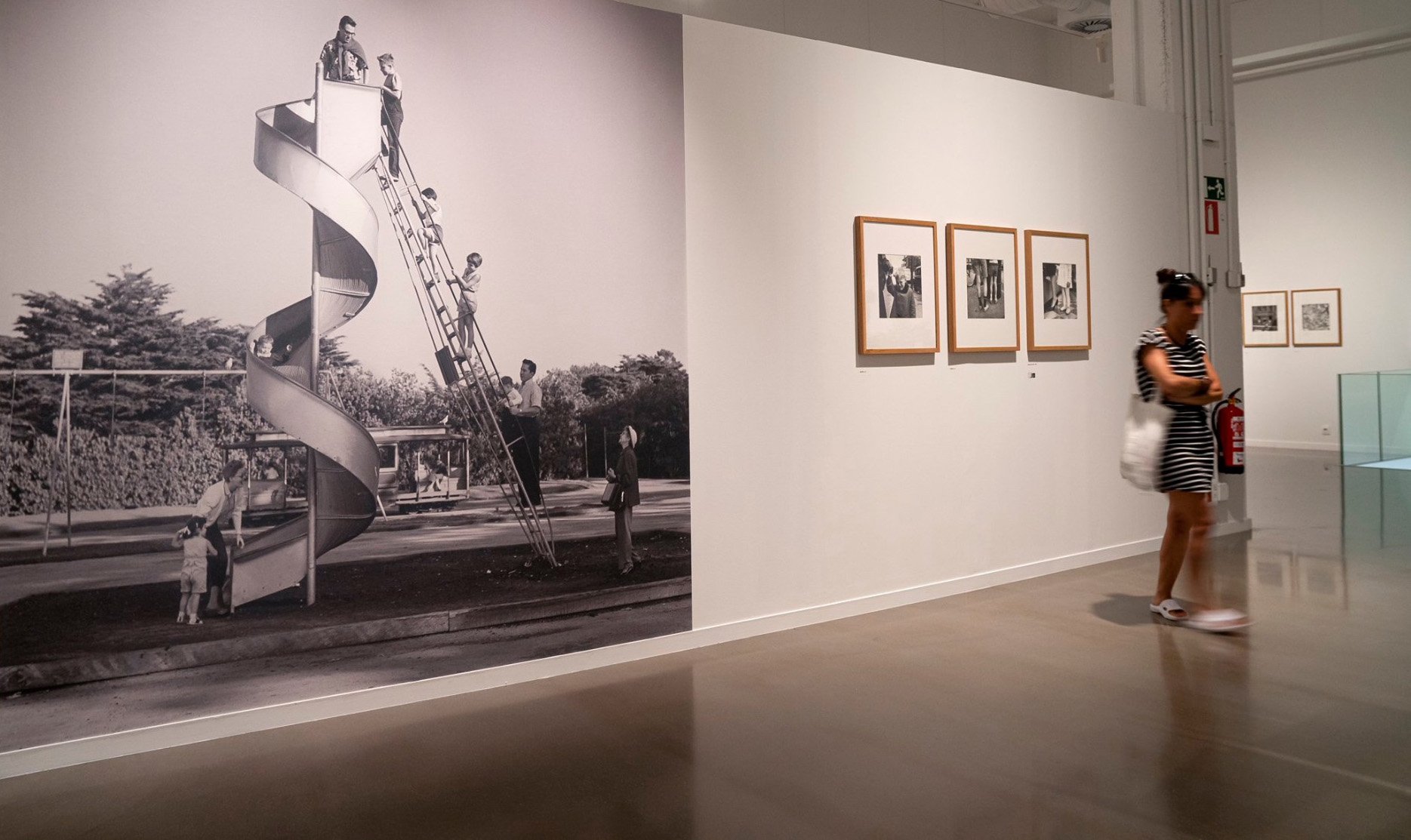 New York, NC. © Estate of Vivian Maier, Courtesy of Maloof Collection and Howard Greenberg Gallery, NY. A la selección de fotografías acompaña otra de películas en super 8 mm, realizadas a partir de 1960, que permite seguir la mirada de Vivian Maier en movimiento. Como en sus fotografías, ofrece una experiencia visual, resultado de una observación discreta y silenciosa del mundo que la rodea. No hay narrativa, no hay movimientos de cámara (el único movimiento que se puede llamar cinematográfico sería el del autobús o el metro en el que va montada). Vivian Maier filma aquello que le lleva a la imagen fotográfica: observa, se detiene de forma intuitiva sobre un sujeto y lo sigue. Hace zoom con su objetivo para acercarse desde la distancia y se centra en una actitud o un detalle (como las piernas o las manos de algunas personas en medio de la multitud). La película funciona más bien como un documental –un hombre que está siendo arrestado por la policía o los destrozos provocados por un tornado– o como un objeto de contemplación –la extraña procesión de ovejas hacia los mataderos de Chicago.Super 8