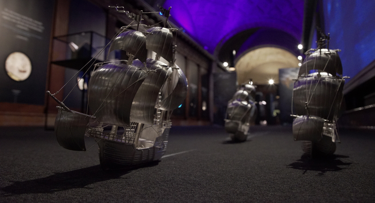 Este patrimonio histórico aparece inmerso en un contexto ambiental y emocional conformado por audiovisuales y una original escenografía con la intención de hacer sentir al visitante los desafíos del viaje oceánico, y acercar al público, de una forma diferente, más humana, la historia contenida en los documentos originales. En este sentido destacan los modelos navales del maquetista Antonio Hierro, las siete esculturas realizadas por Javier Romero Abrio y 25 piezas de orfebrería, composiciones que han sido dirigidas por Antonio Fernández Torres y el equipo de diseño de la exposición.