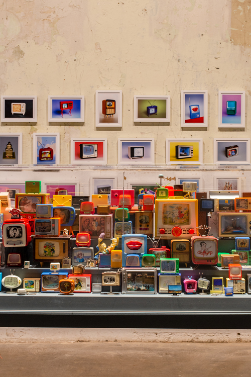 Él fue uno de los primeros artistas que consiguió retorcer esos mensajes, los códigos visuales de los medios de masas del siglo XX para convertirlos en obras de arte, en medios de reflexión crítica, eligiendo la televisión como su icono más representativo. La televisión, que hoy agoniza, es el protagonista de muchas de sus series y el elemento omnipresente en la colección personal de pequeños exvotos televisivos que desborda las estanterías de su estudio parisino.