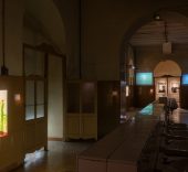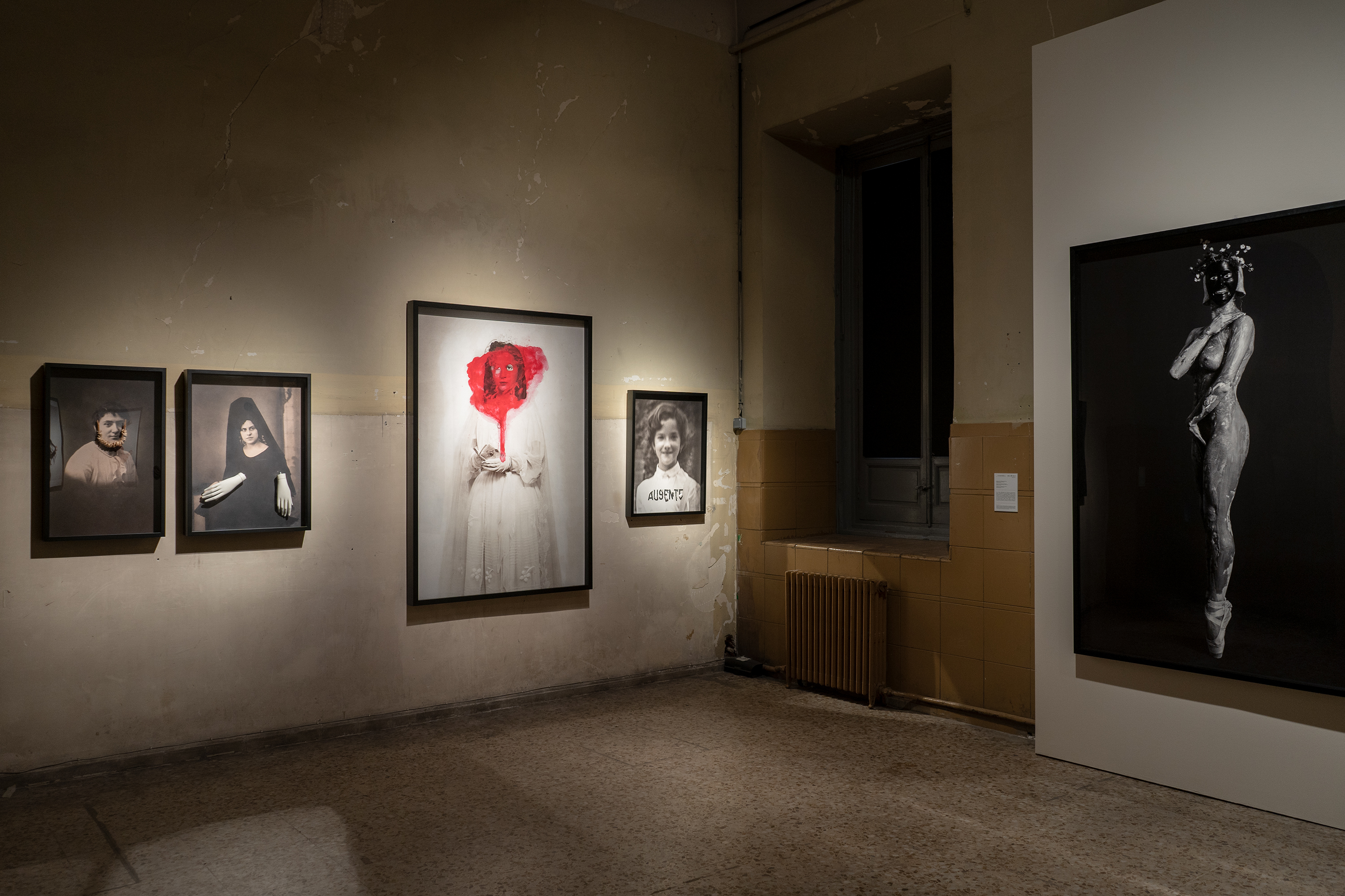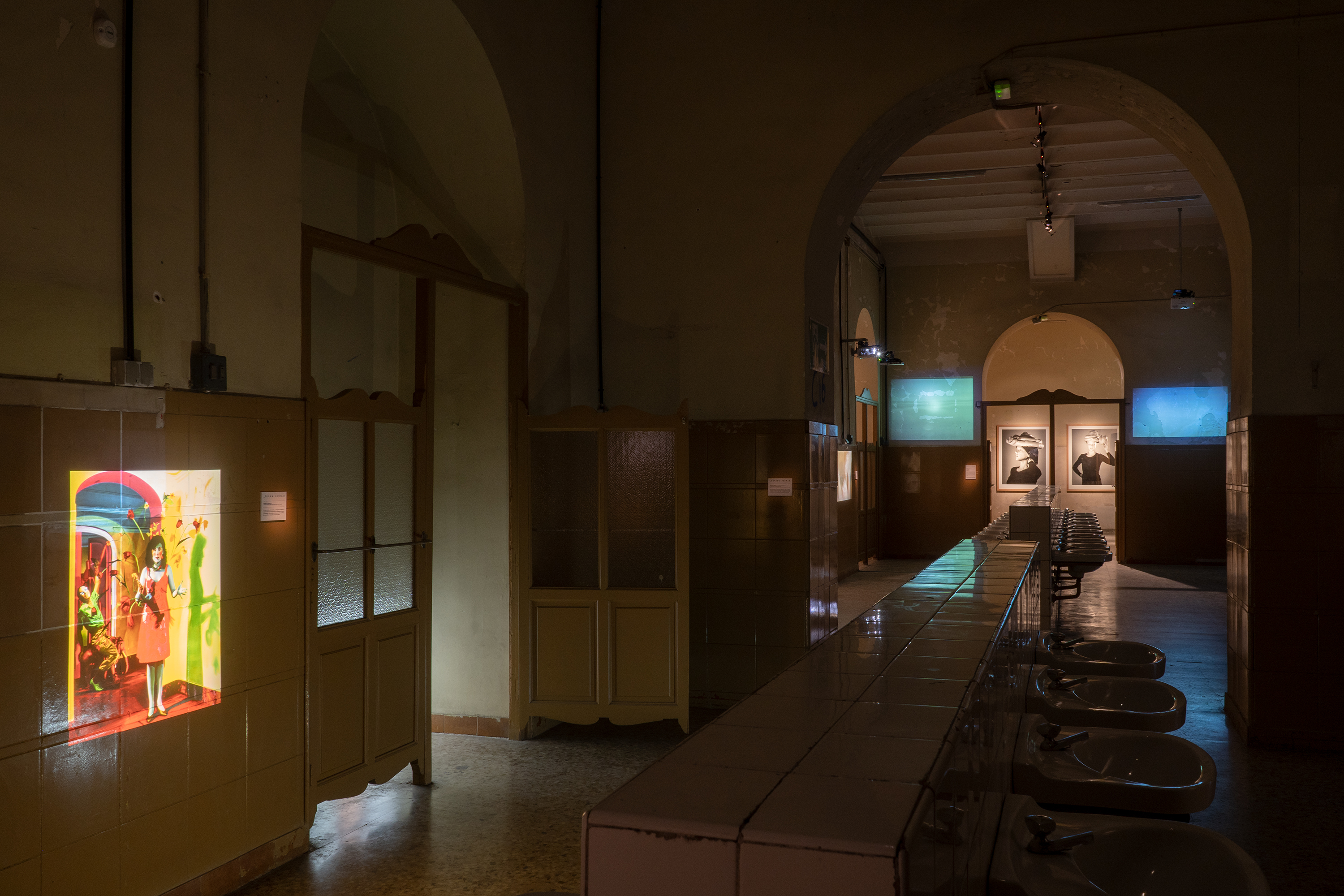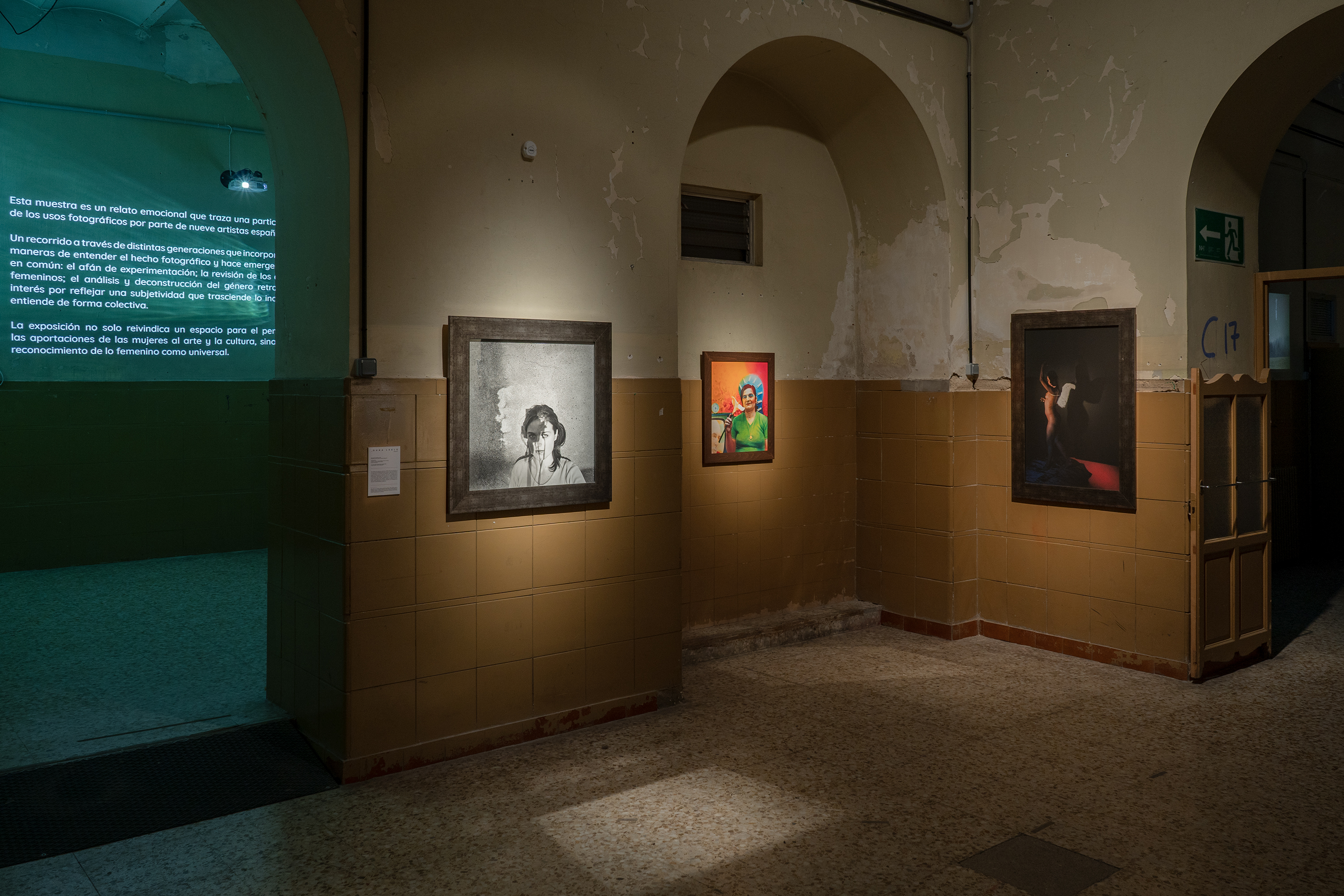 Fotografías y audiovisuales se instalan en las estancias que en su momento fueron los lavabos masculinos de la Fábrica de Tabacos. En una iluminadora y alegórica coincidencia, las creadoras ‘ocupan’ un espacio tradicionalmente reservado a los hombres. Al mismo tiempo, la atmósfera de los baños también nos remite a la idea de laboratorio fotográfico analógico, donde la imagen fotográfica emergía de la oscuridad como por arte de conjuros y encantamientos.