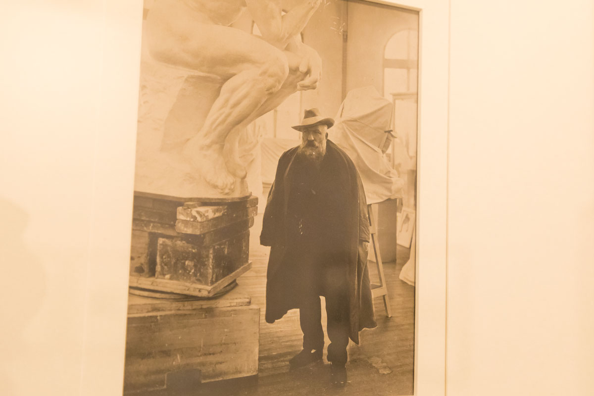 Desde 1890 y, sobre todo, tras su exposición en 1900 en el Pavillon de l’Alma, Rodin fue considerado uno de los más importantes artistas del momento. En julio de 1939 se inauguraba, cuarenta años después de haber sido esculpido, el Monumento a Balzac. Giacometti asistió a este acontecimiento no solo para poder ver un trabajo que ya debía conocer bien, sino también para apoyar el reconocimiento de un artista que se erigía como ‘genio de la escultura moderna’. Años después, en el paso de la década de 1940 a la de 1950, el interés de Giacometti por Rodin se reavivó, tal y como testimonian las fotografías tomadas en Le Vésinet, el parque de Rudier, que fue fundidor de ambos. El suizo posó junto a obras de Rodin como La Edad de Bronce y se mezcló entre los personajes del Monumento a los Burgueses de Calais, pues como dejó escrito: “Entre ellas me siento parte de un museo magnífico de la escultura contemporánea”.