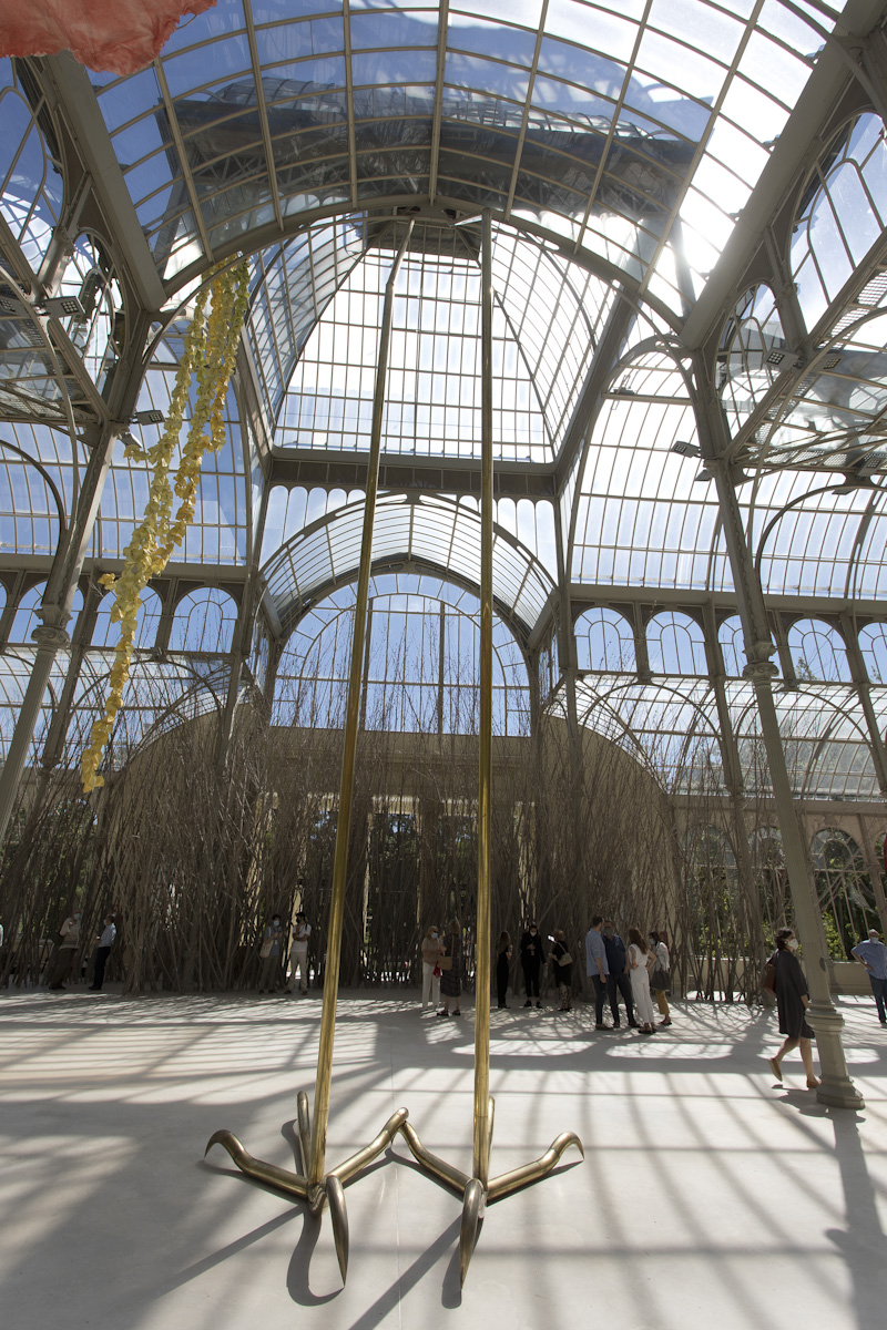 Esta es la primera muestra individual que se le dedica a Halilaj en España y ha estado dos años trabajando en ella, en los que investigó acerca de los orígenes del Palacio y de la primera exposición que hubo en él en 1887: “Es un lugar increíble. Me gustan mucho los lugares altos y poder jugar con los equilibrios entre el espacio y la obra. Veo el Palacio de Cristal como una plaza abierta donde la gente está invitada a transitar libremente. Me gusta concebir mis exposiciones como espacios públicos”.