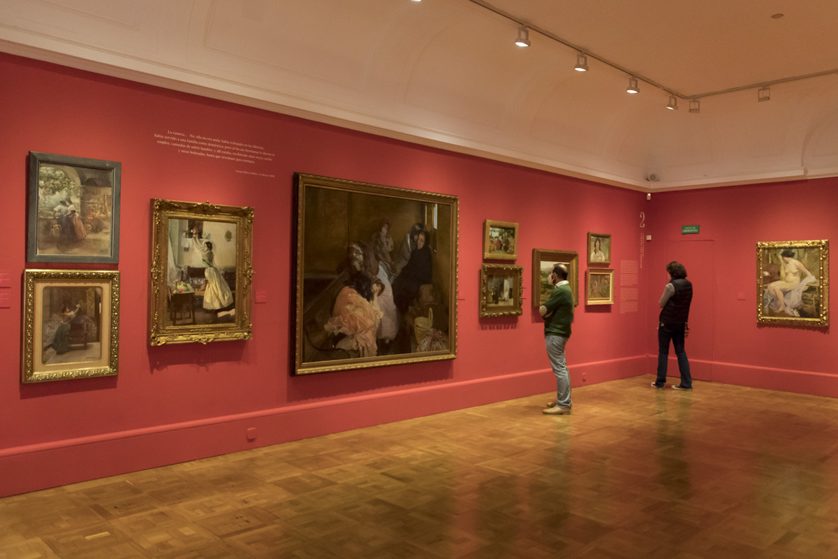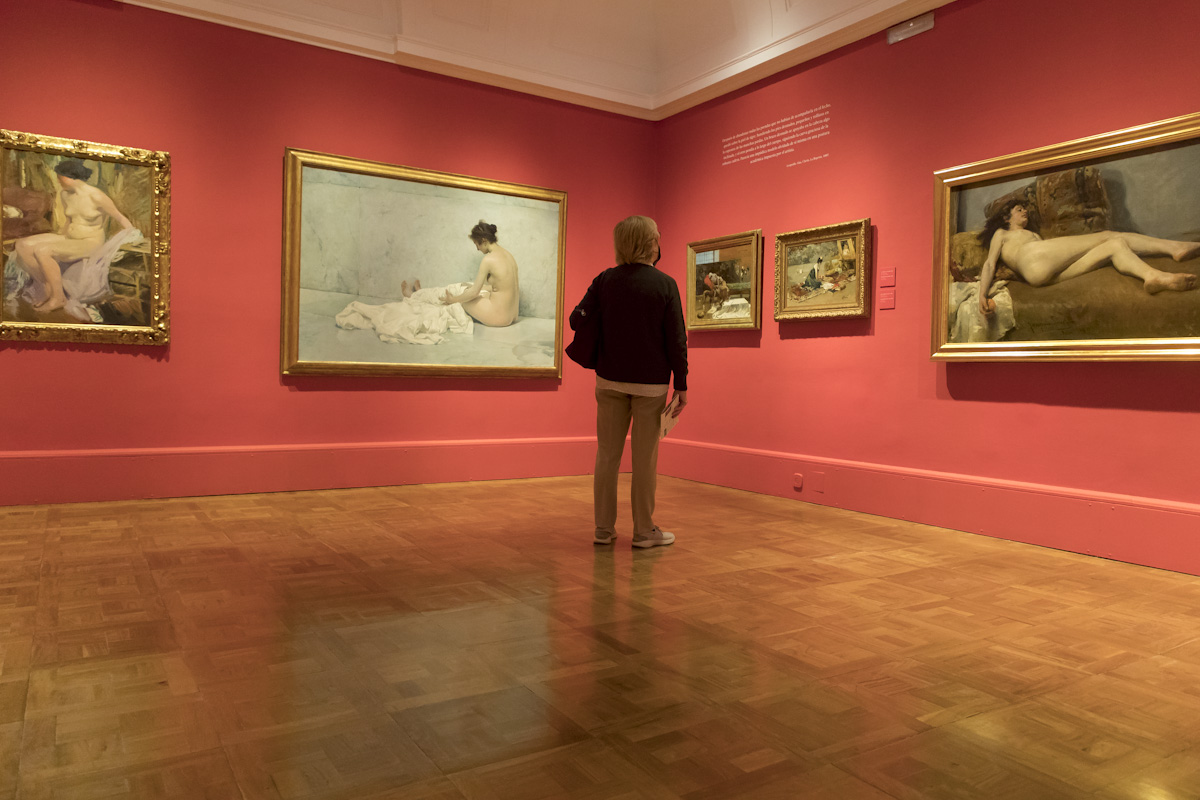 El Museo Sorolla ha reunido para la ocasión 36 obras, muchas de ellas poco conocidas y procedentes de colecciones particulares, agrupadas en cuatro secciones: “Historia, mitología y otros pretextos”; “Mujeres del pueblo”; “Pescadoras y madres”, y “Elegantes y modernas”.