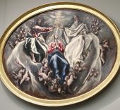 Tres años después, el Greco y su hijo Jorge Manuel recibieron el encargo de decorar la capilla mayor de la iglesia del Hospital, donde se alberga la citada talla de la Virgen, que se sustanció en cuatro lienzos de diferentes tamaños y formatos, pensados para glorificar a la Virgen y que se colocarían en lo alto de esa capilla. Estos lienzos fueron realizados poco tiempo después de concluir el Greco su único encargo documentado en Madrid, el retablo del Colegio de Doña María de Aragón (1597-1600), conjunto del que el Prado cuenta con cinco lienzos y que inicia, junto con las telas de Illescas, el que será el estilo final del Greco.