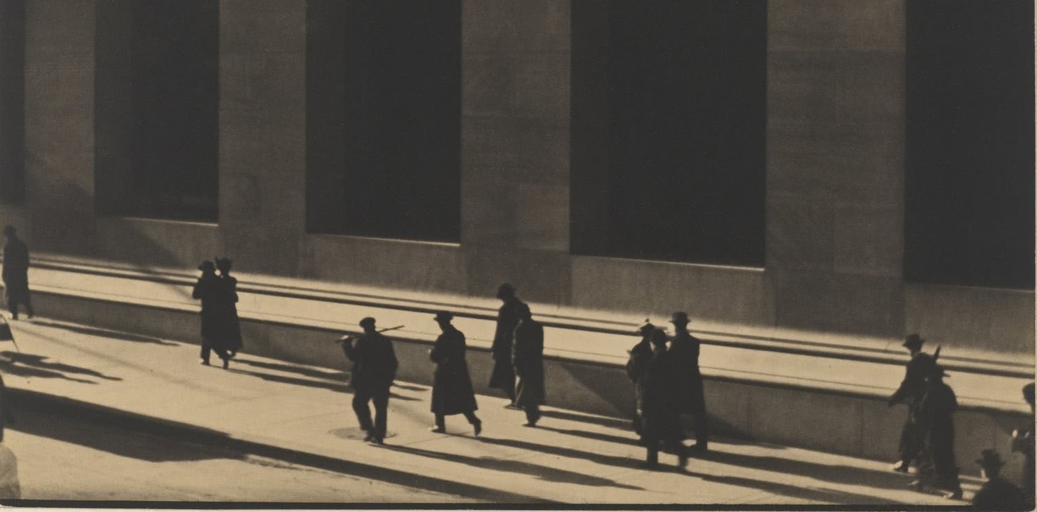 Geometrías: reconfigurando la mirada. Uno de los elementos con los que Strand aprendió a trabajar en los inicios de su carrera fue el movimiento de los peatones. A instancias de Stieglitz y siguiendo a Alvin Langdon Coburn (1882-1966) comenzó a fotografiar desde los viaductos, puentes y edificios altos de la ciudad. Estas imágenes y su movimiento introdujeron un rasgo documental y de cotidianeidad en su obra que se convertirá en uno de los elementos característicos de la fotografía urbana del siglo XX.