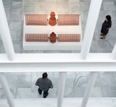 Su interés por la arquitectura utópica se refleja también en la pieza Puente invertido doble 2019, que también sugiere, igual que sus túneles, la fragilidad de un mundo que se apoya sobre cimientos de Lego o establece lazos entre puentes imposibles.