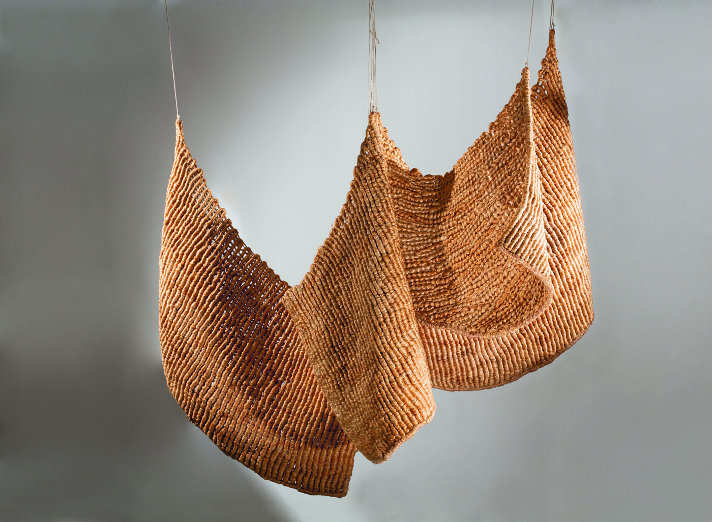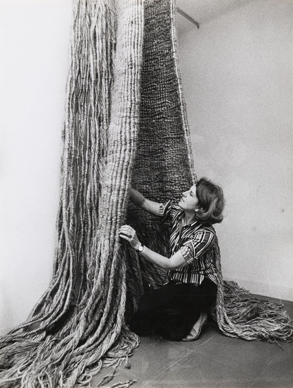 Los collages textiles y sobre papel muestran el atrevimiento y la voluntad de la artista de dialogar con el pasado, entendido como un palimpsesto cultural. Esfera y plomos, de 1969, es un homenaje a Gaudí y sus maquetas funiculares. Ente social, de 1976, construida a partir de sus característicos anudados, es una obra de gran presencia, una fascinante escultura de grandes dimensiones suspendida en el aire que se proyecta en el espacio.