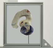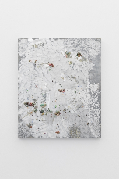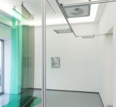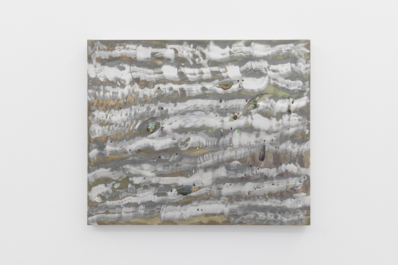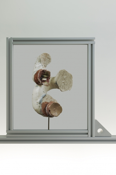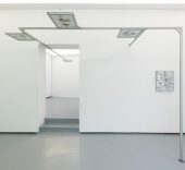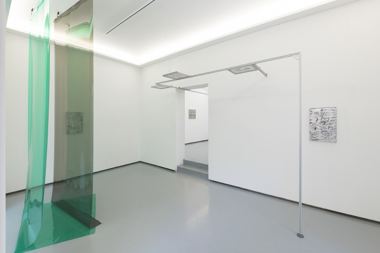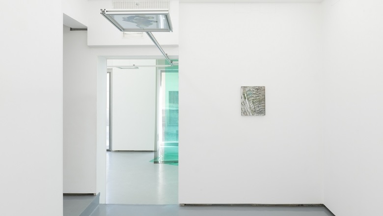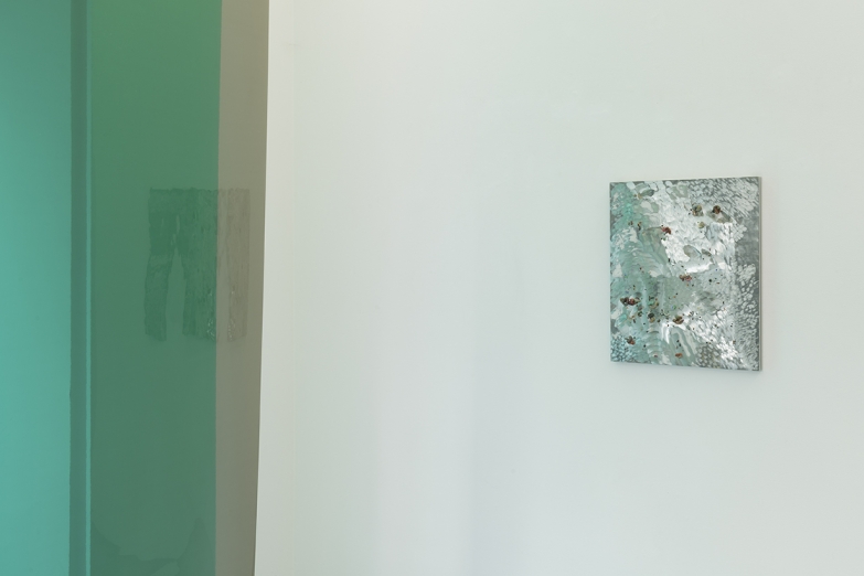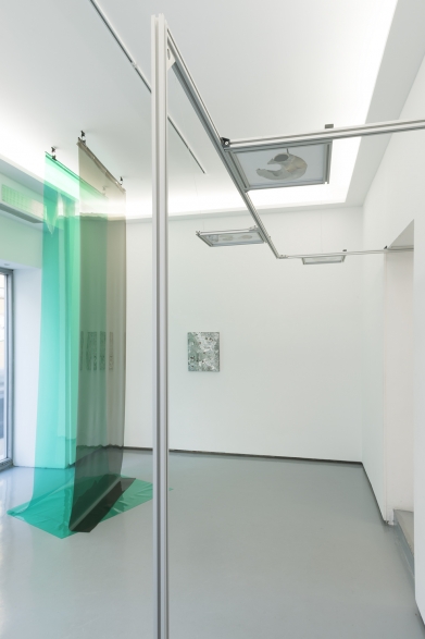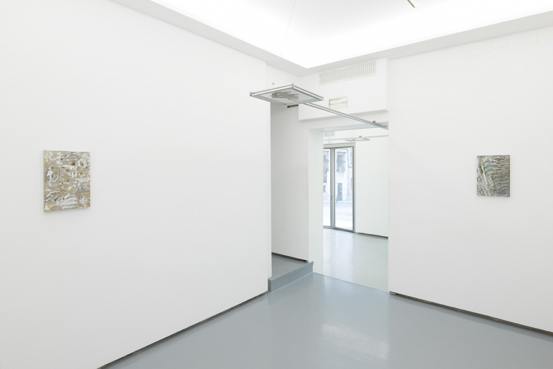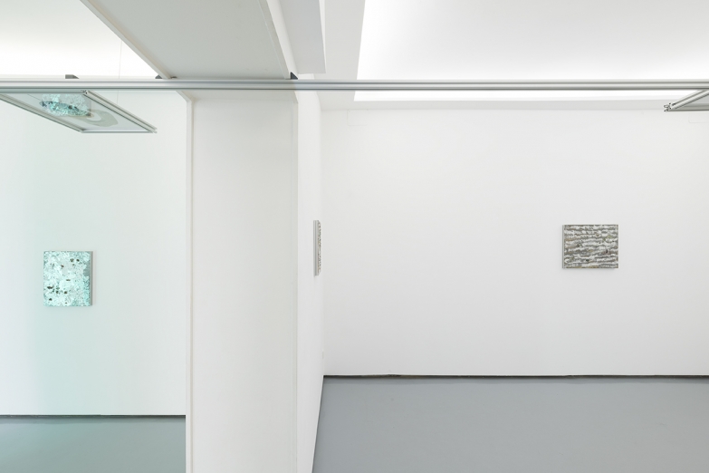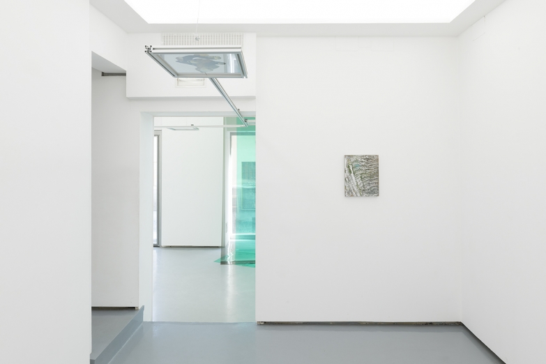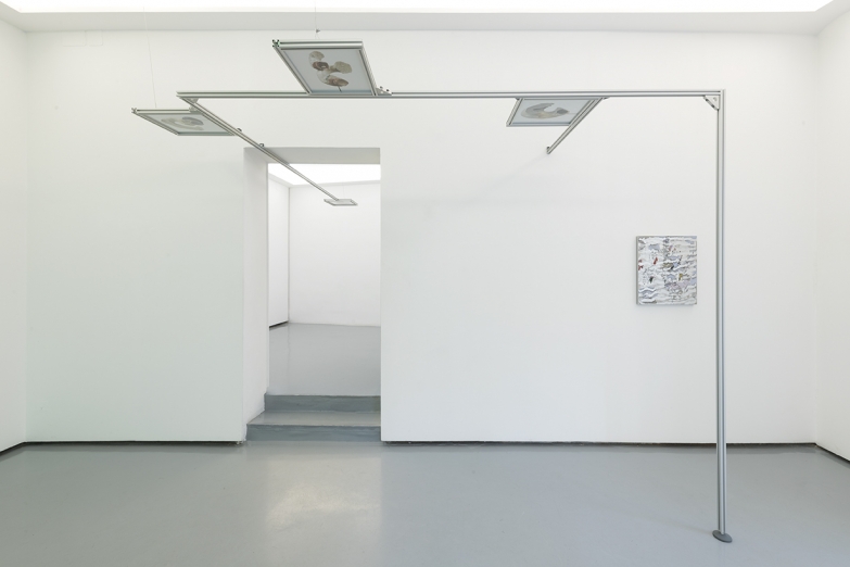 Una estructura de perfiles de aluminio (otro material extrusionado), comúnmente utilizada en el diseño de cadenas de montaje o servidores informáticos, atraviesa las dos salas de exposición. Esta instalación sirve de soporte para unas fotografías macro de virutas, fibras y otras máculas contenidas en la materia pictórica que ha brotado del soporte. Estas imágenes biomórficas se contemplan desde un plano nadir, casi desde bajo tierra. Un campo de visión artificioso en lo que se refiere a la disposición de obra en una galería, pero que subvierte la correspondencia entre pintura y fotografía en el ámbito del espacio figurado y plano pictórico.