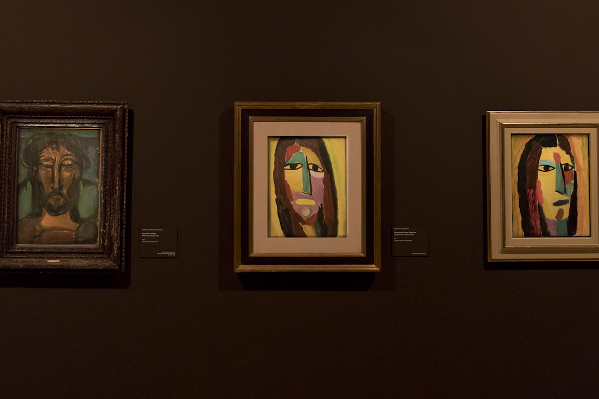 Pero es el retrato y, más concretamente, la indagación sobre las facciones humanas hasta sus líneas maestras esenciales lo que de manera más clara singulariza la producción pictórica de Jawlensky. El recorrido que pasa por las Cabezas de preguerra, las Cabezas místicas, las Cabezas geométricas (o Cabezas abstractas) y las Meditaciones pone de manifiesto una pintura en constante tensión entre la plasmación de la imagen del individuo y la reducción del mismo a un arquetipo.