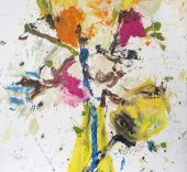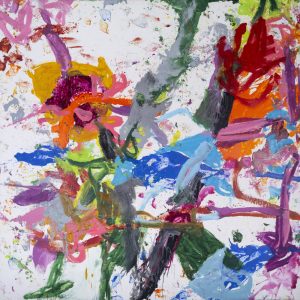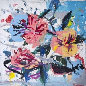 En esta muestra utiliza las flores como elemento vertebrador sobre el que articula la vitalidad que le caracteriza. Flores vibrantes, coloristas y luminosas cuya esencia, su olor, es a pintura, en línea con la greguería de Ramón Gómez de la Serna: “El perfume es el eco de las flores”.