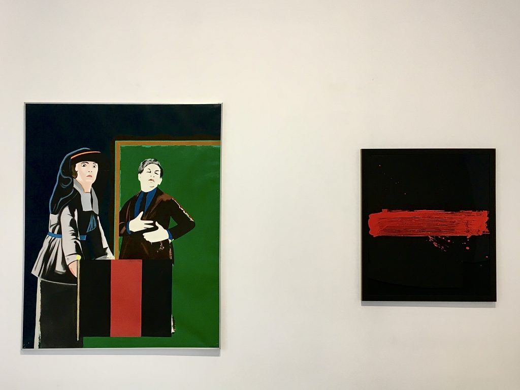 El suicidio del falangista (1971), de Eduardo Arroyo, y Engaste (2020), de Rafael Canogar. Visto y no Visto en la Galería Álvaro Alcázar.