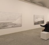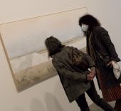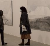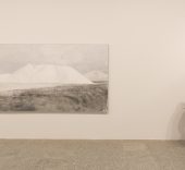 Las montañas de sal tienen una presencia rotunda pero no eluden cierto aspecto evanescente, casi espectral. Y además de las salinas, otro grupo de pinturas radicalmente diferente en su tratamiento del color, obras que comparten la misma intensidad lumínica y una composición articulada en torno a una férrea línea del horizonte. La muestra presenta también un importante conjunto de bajorrelieves en torno al mismo motivo, realizados en fechas recientes, que revelan de nuevo un interés por la línea del horizonte.