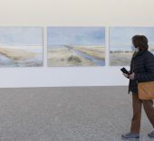 Concebida por el Museo Patio Herreriano de Valladolid y el Centro Andaluz de Arte Contemporáneo –de hecho sus directores son sus comisarios, Javier Hontoria y Juan Antonio Álvarez Reyes, y ya pasó por ambos museos–, Laffón presenta en La sal una mirada atenta a las salinas de Bonanza, en Sanlúcar de Barrameda. La desembocadura del Guadalquivir, entre Cádiz y Huelva, y con el Coto de Doñana como motivo y testigo privilegiado del hecho pictórico, es el lugar desde el que la artista viene desplegando su pintura más suelta, libre y ambiciosa.
