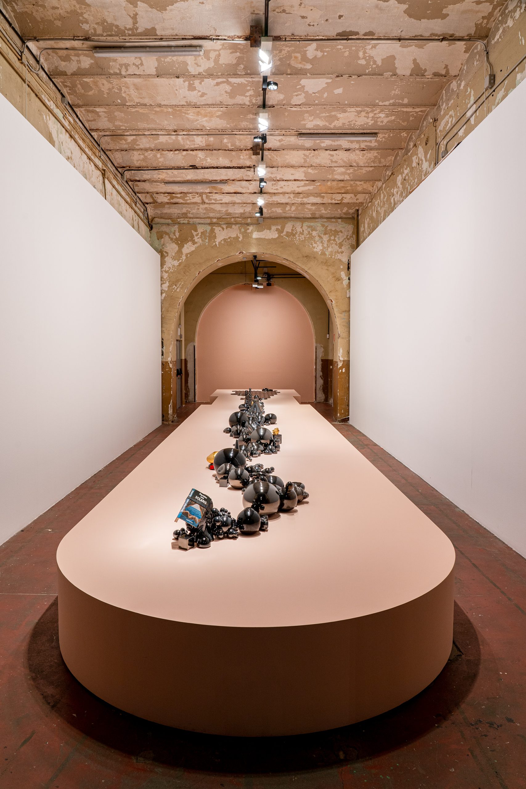 De esta forma, el recorrido se inicia en el patio (Apertura), donde se encuentran el tablero y la mesa de luz en los que transcurren las dos películas de Acromática. El cromatismo de estas piezas se basa en un ajedrez que Marcel Duchamp planeaba producir en 1920. En el espacio central (Medio juego), una línea de tiempo resume su trayectoria basándose en las cuatro eras del ajedrez: romántica, científica, hipermoderna y dinámica. En el último tramo (Final de partida) se despliegan, entre otros trabajos, las obras que completan Acromática; y la instalación de piezas cerámicas Naturaleza muerta con perlas negras (2002-2021) que, realizada a lo largo de dos décadas, evoca un tiempo suspendido e interno, como el del ajedrez.
