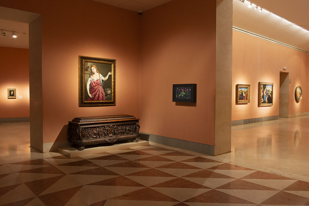 Diez de la piezas se presentan en la Sala Mirador, con acceso directo desde el vestíbulo del Museo, y cinco en las salas de la colección permanente en diálogo con obras de maestros antiguos como Hans Memling, Jan de Beer o París Bordone.