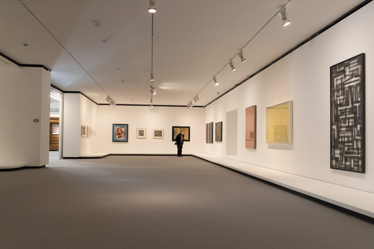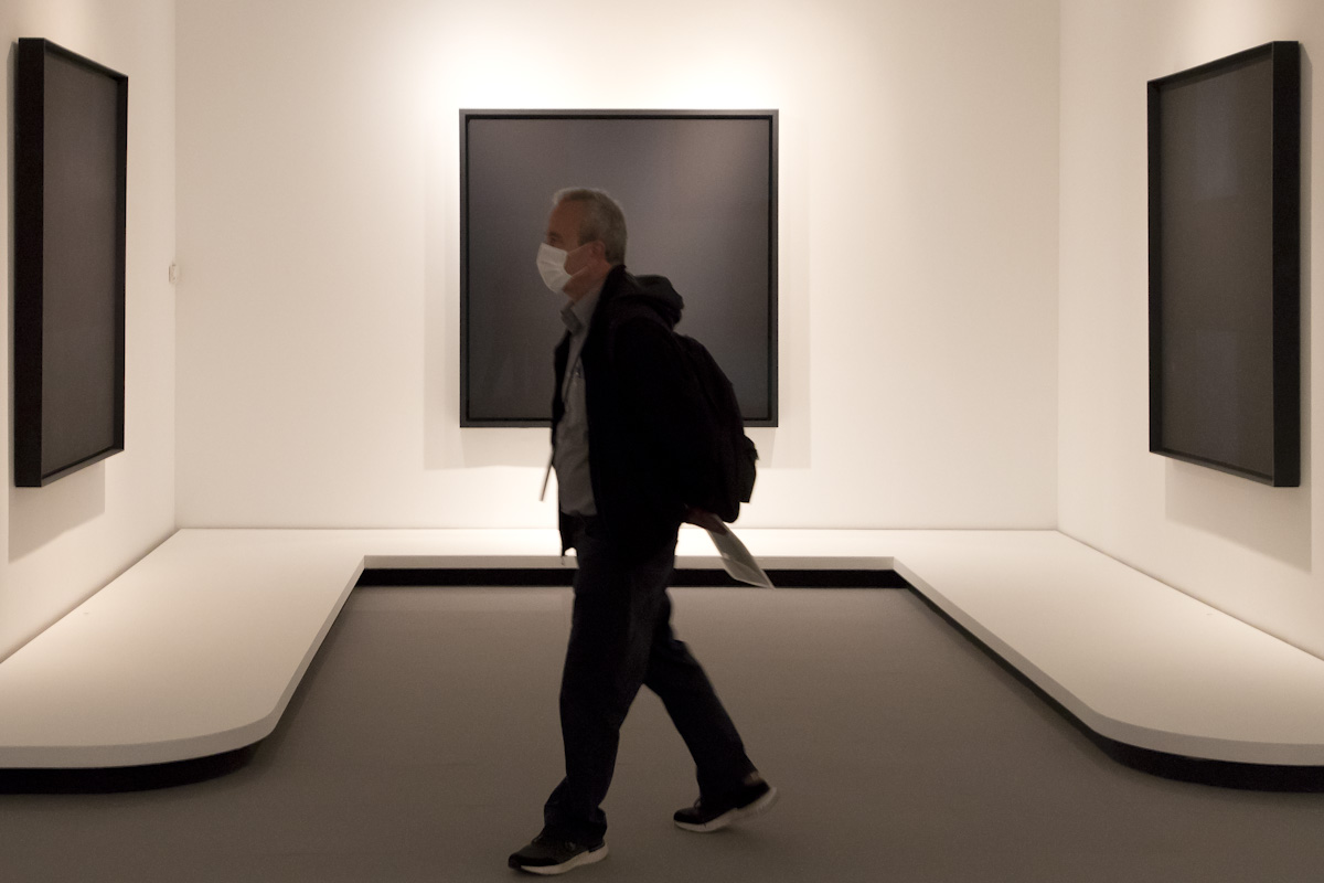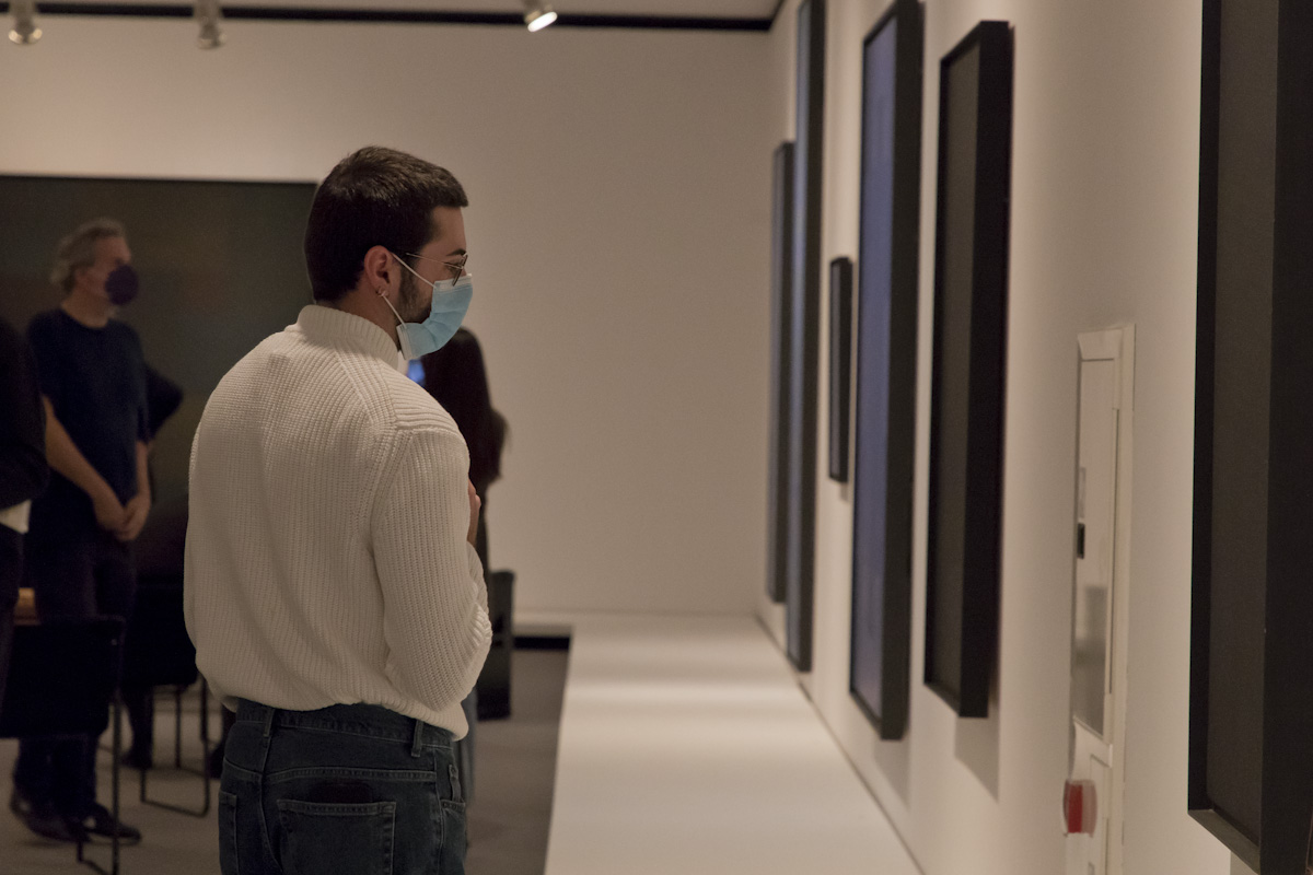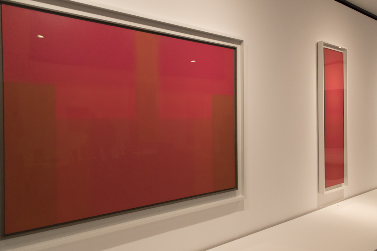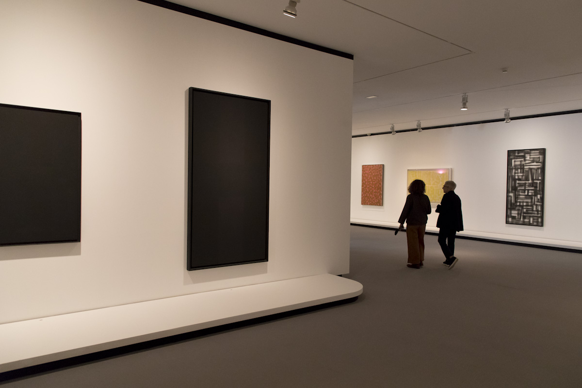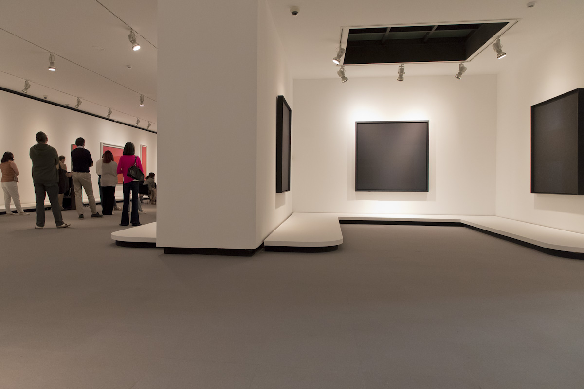 En la Sala Blanca, que incluye únicamente las obras numeradas, «el recorrido es cronológico, vamos progresivamente avanzando hacia una depuración cromática y formal, pasando por sus pinturas rojas y azules hasta desembocar en su pintura negra, que desde el año 1954 hace en exclusiva, y a la que se consagra desde 1960 con el formato cuadrado de 60 x 60 pulgadas [152,4 x 152,4 cm]», explica María Toledo.